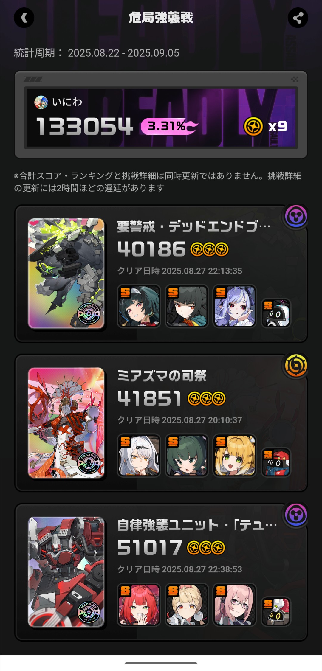 手持ちの範囲でのスコアアタックは編成も人によって違うので、周りと比較しても面白いですね。